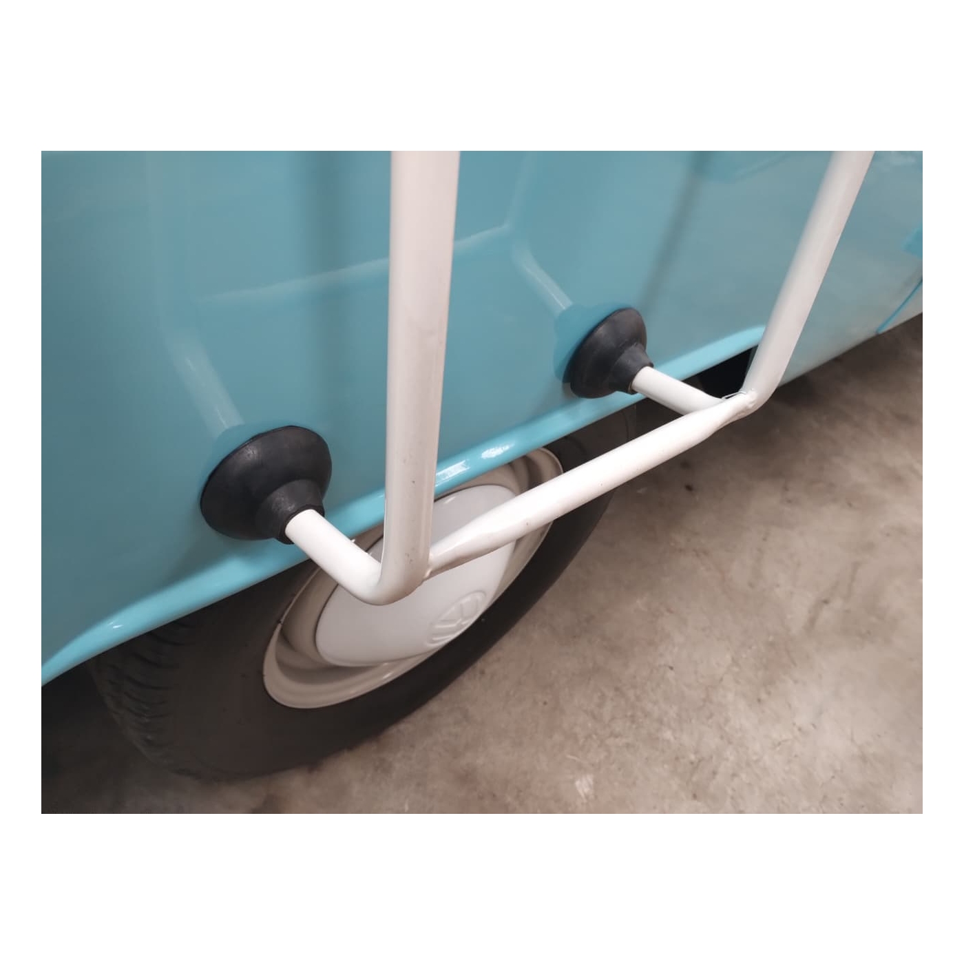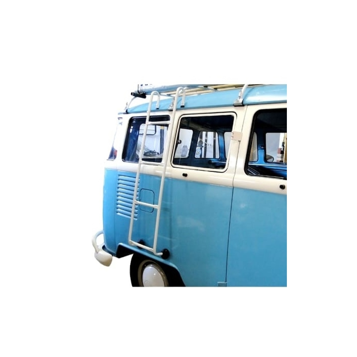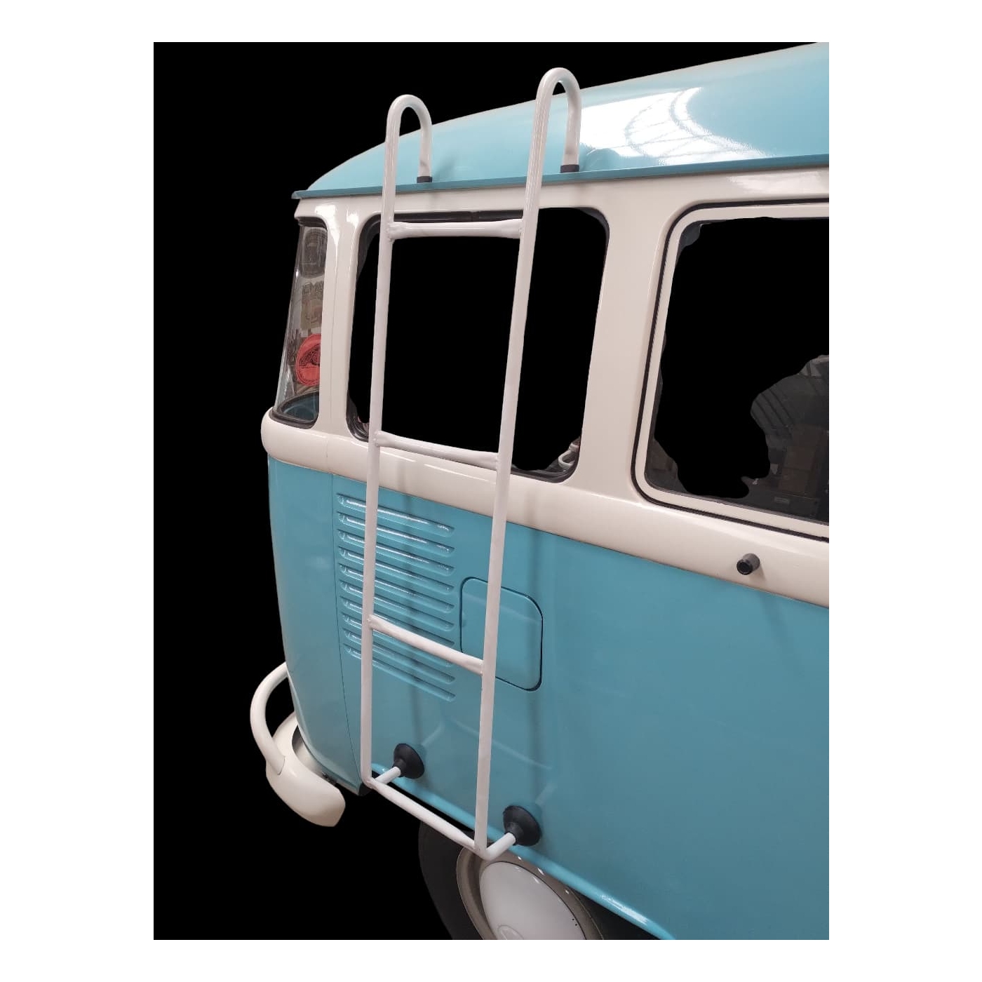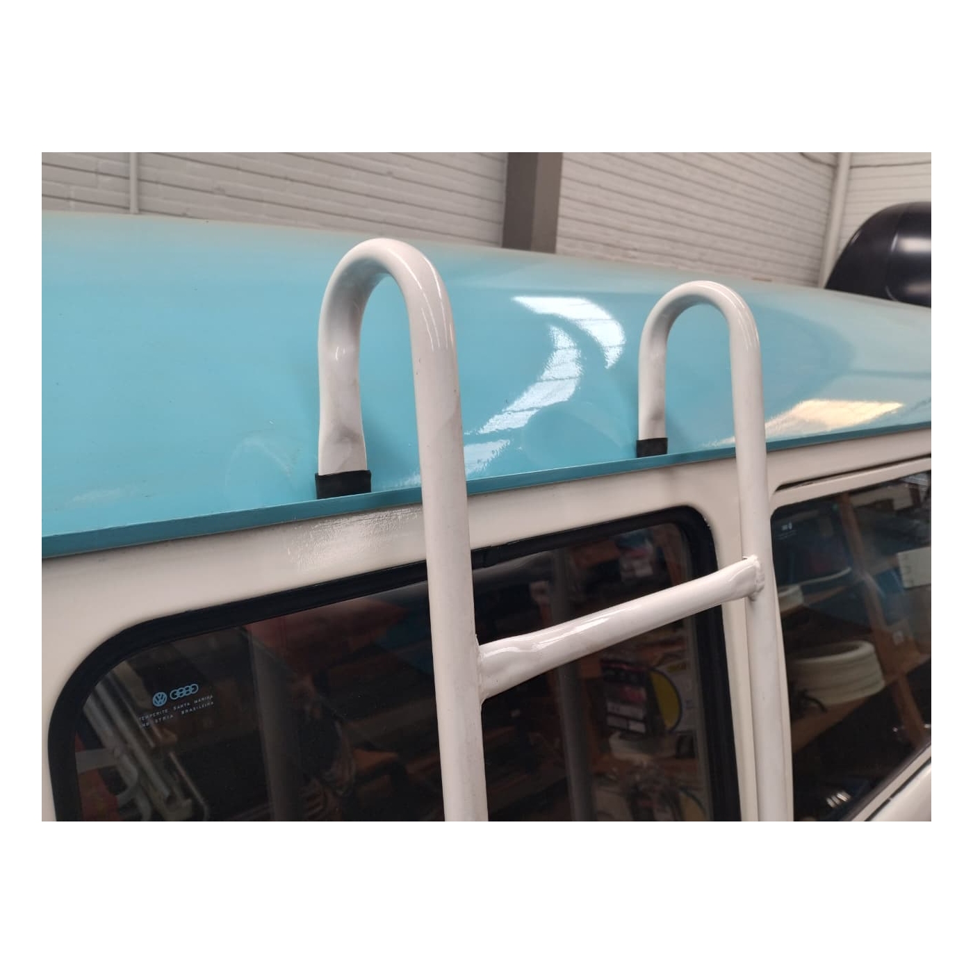 Escada móvel lateral para Kombi. Serve para qualquer ano. Pintura epoxi branca. Fixada na calha do teto. Usada para acessar o bagageiro de teto.