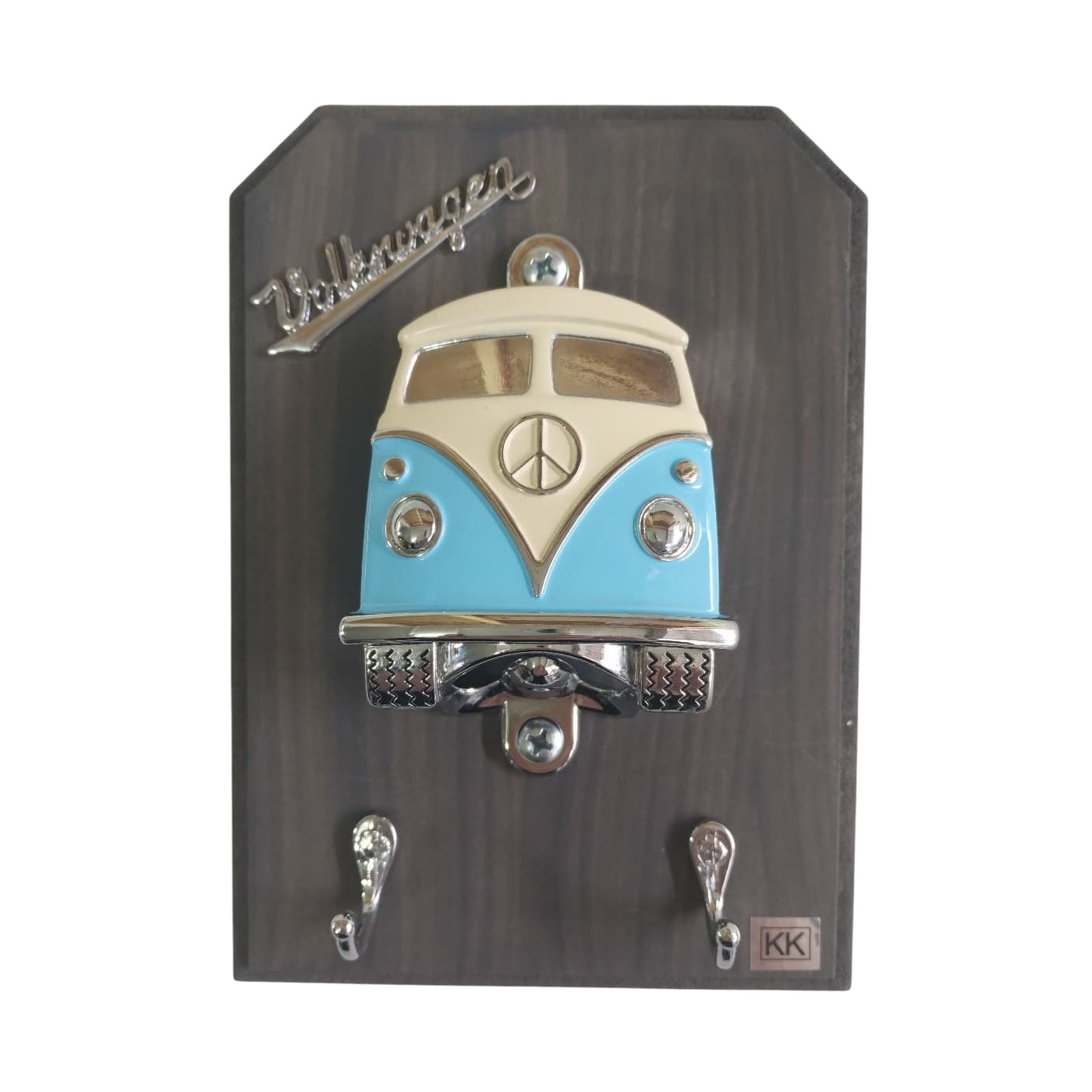 O PORTA CHAVES POSSUI DOIS GANCHOS E O ABRIDOR ESTILIZADO.
