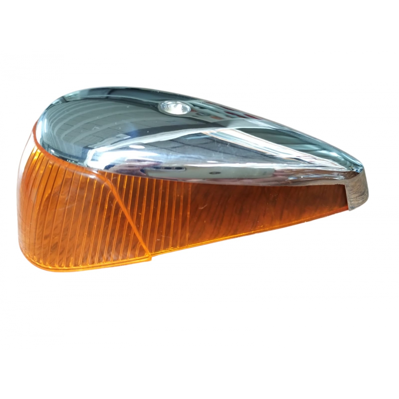 Capa do pisca do Fusca em metal cromado modelo califòrnia (sorriso inteiro), valor referente a unidade. Para ser usado com as lentes originais do Fusca 65 a 96.