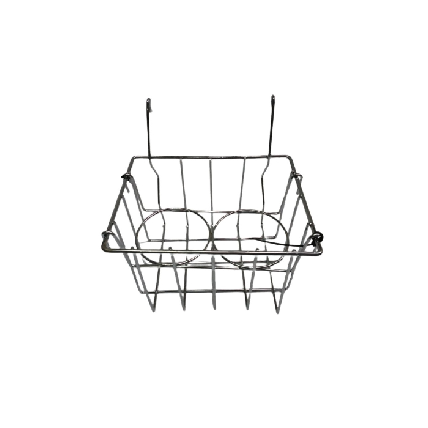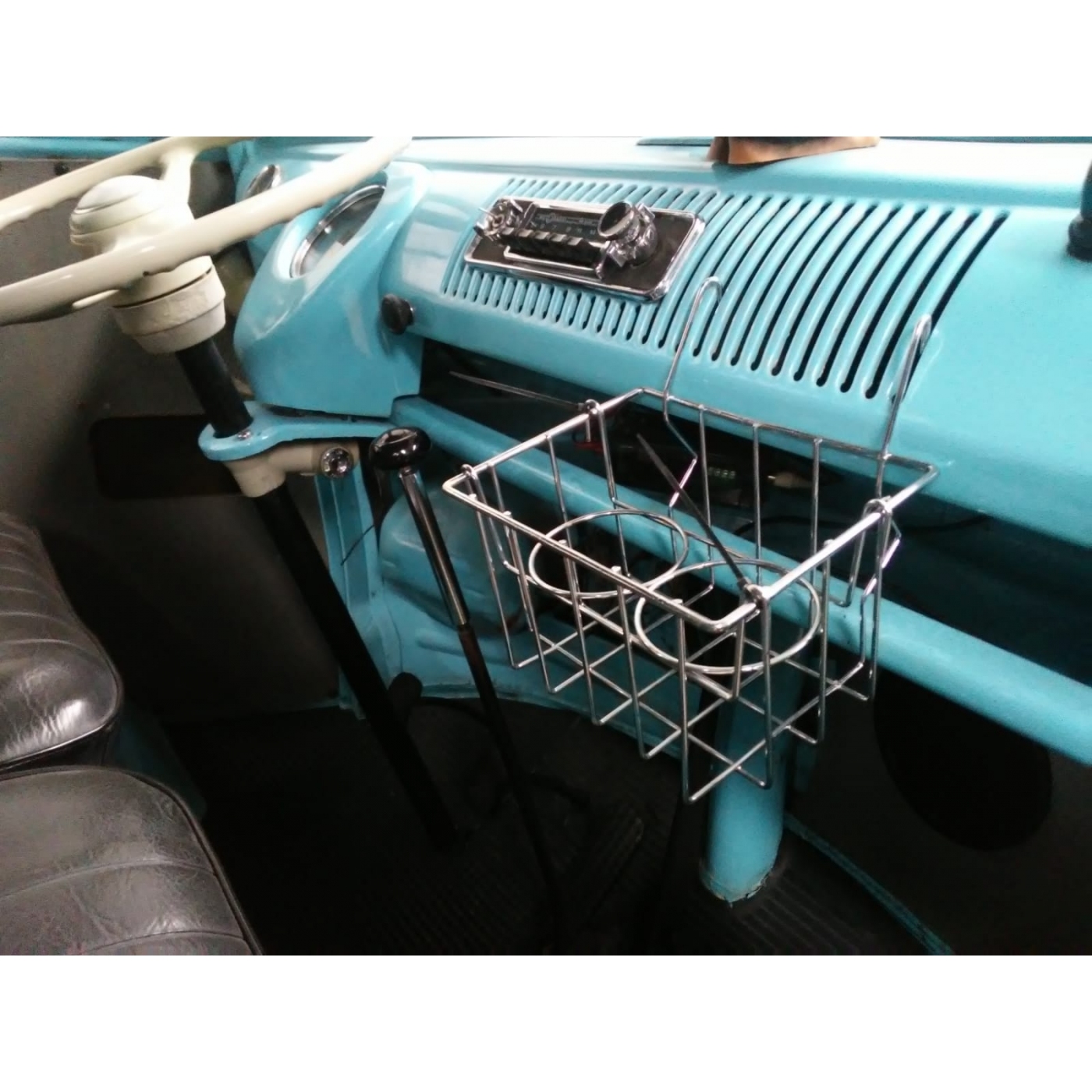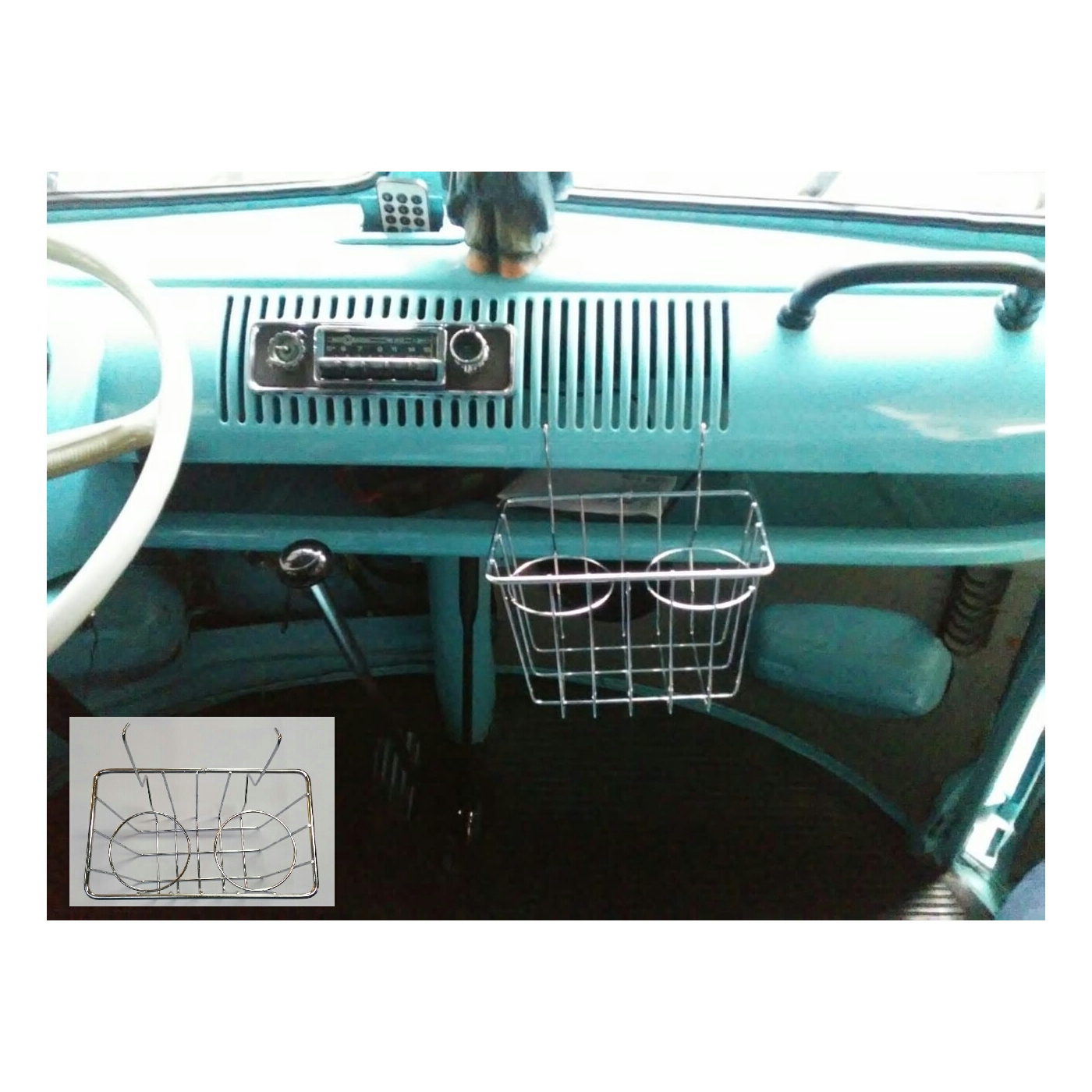 Cesto com porta copos removível. Aramado cromado. Para a Kombi até 75 (corujinha).