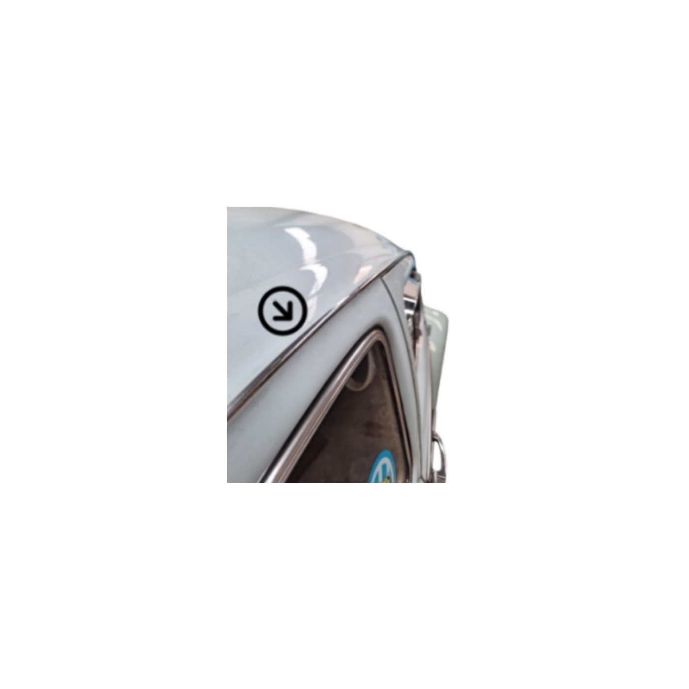 Kit de frisos cromados para a calha do teto do Fusca, jogo contendo 5,40 metros, sendo 2X de 2,70 metros (um friso para cada lado). Os frisos vão da tampa do motor até a dobradiça superior da porta. Esse kit contém cola para fixação.