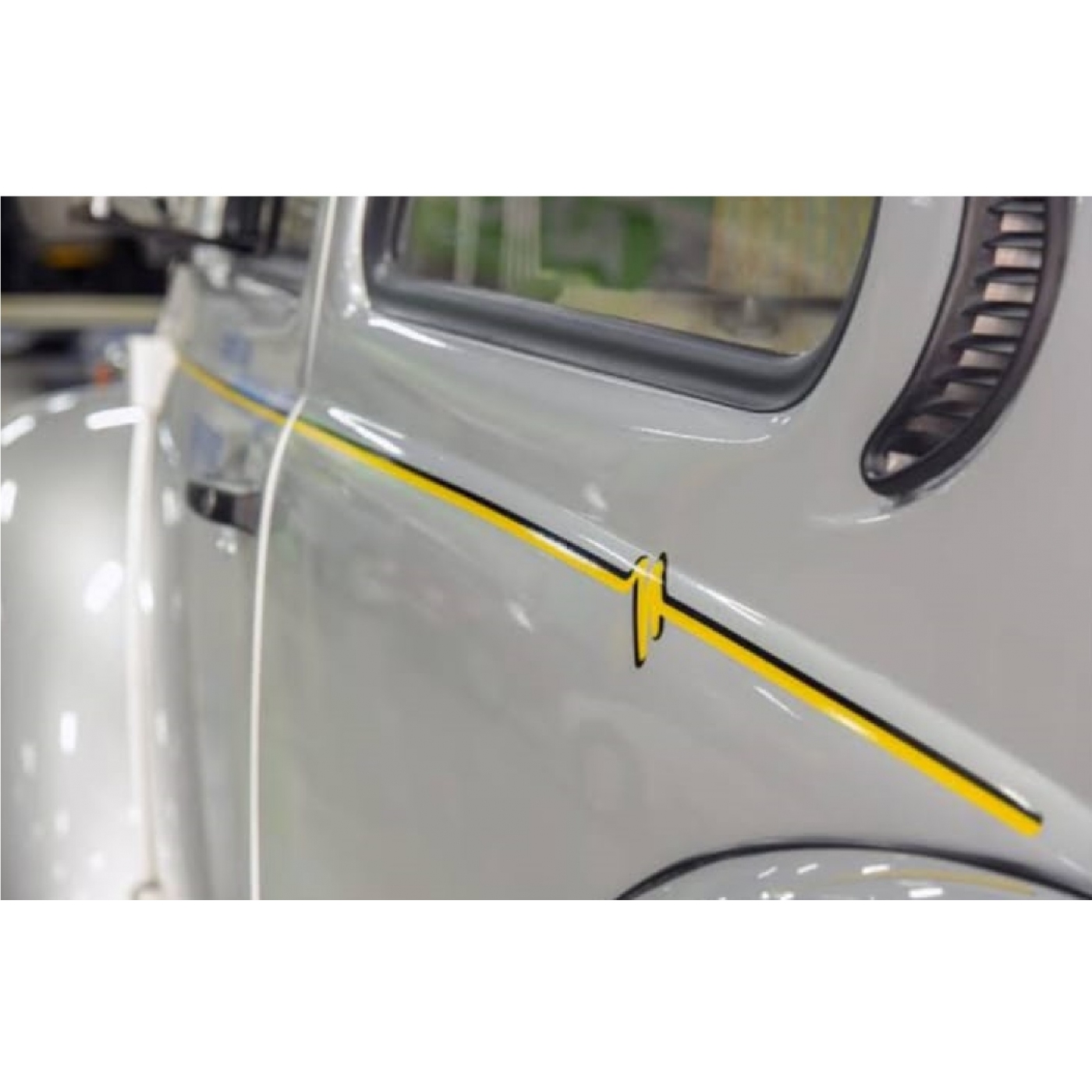 Filete lateral adesivo amarelo com preto para Fusca Itamar. O valor corresponde ao kit para os dois lados.