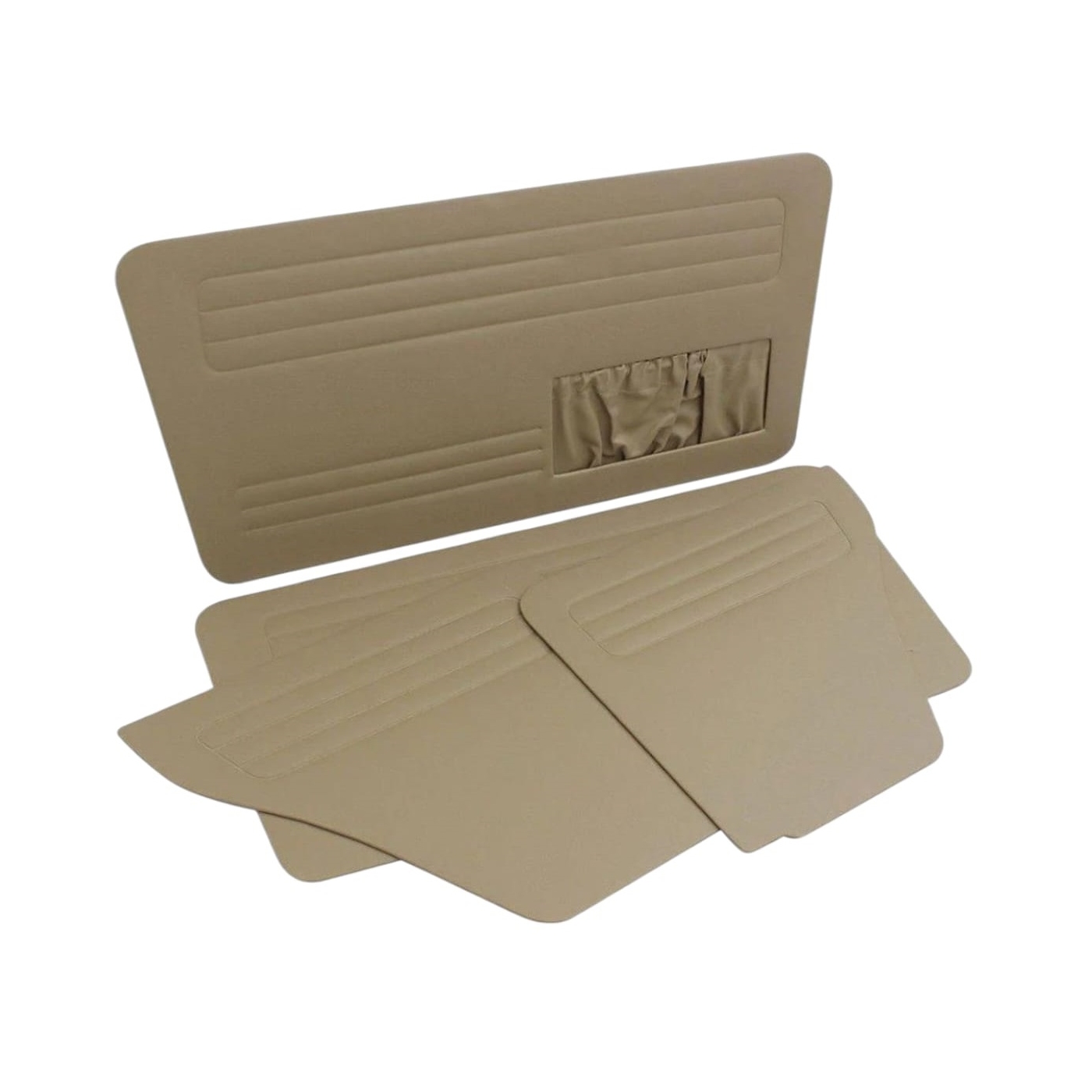 Conjunto de forração de portas e laterais traseira na cor bege com bolsa da Brasilia até 77. O jogo contém 4 peças.