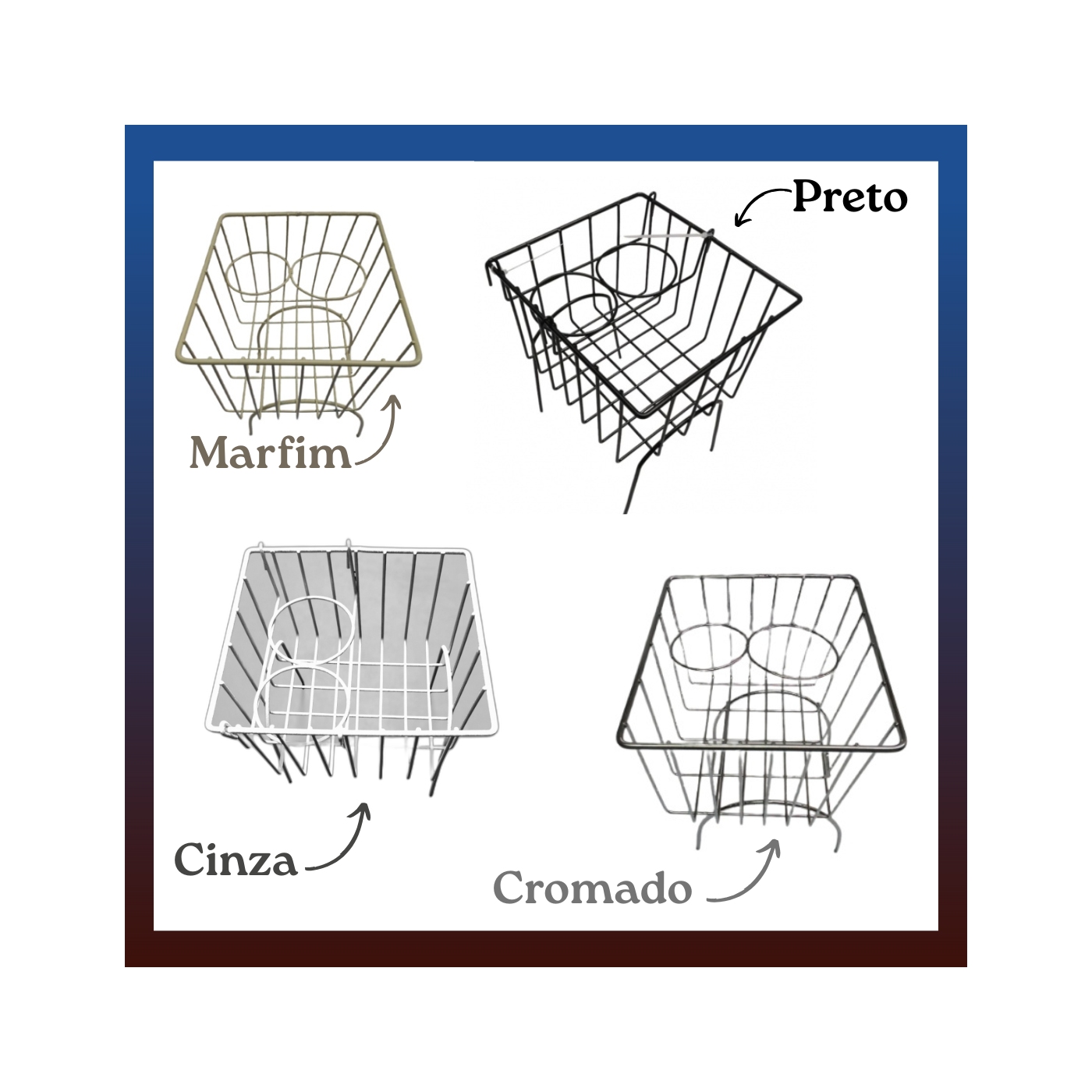 Cesto aramado (cinza, cromado, marfim, preto) com porta copos para instalação no túnel central do Fusca. Pode ser utilizado também na Brasília, Variant. Encaixe por pressão, não precisa aparafusar.