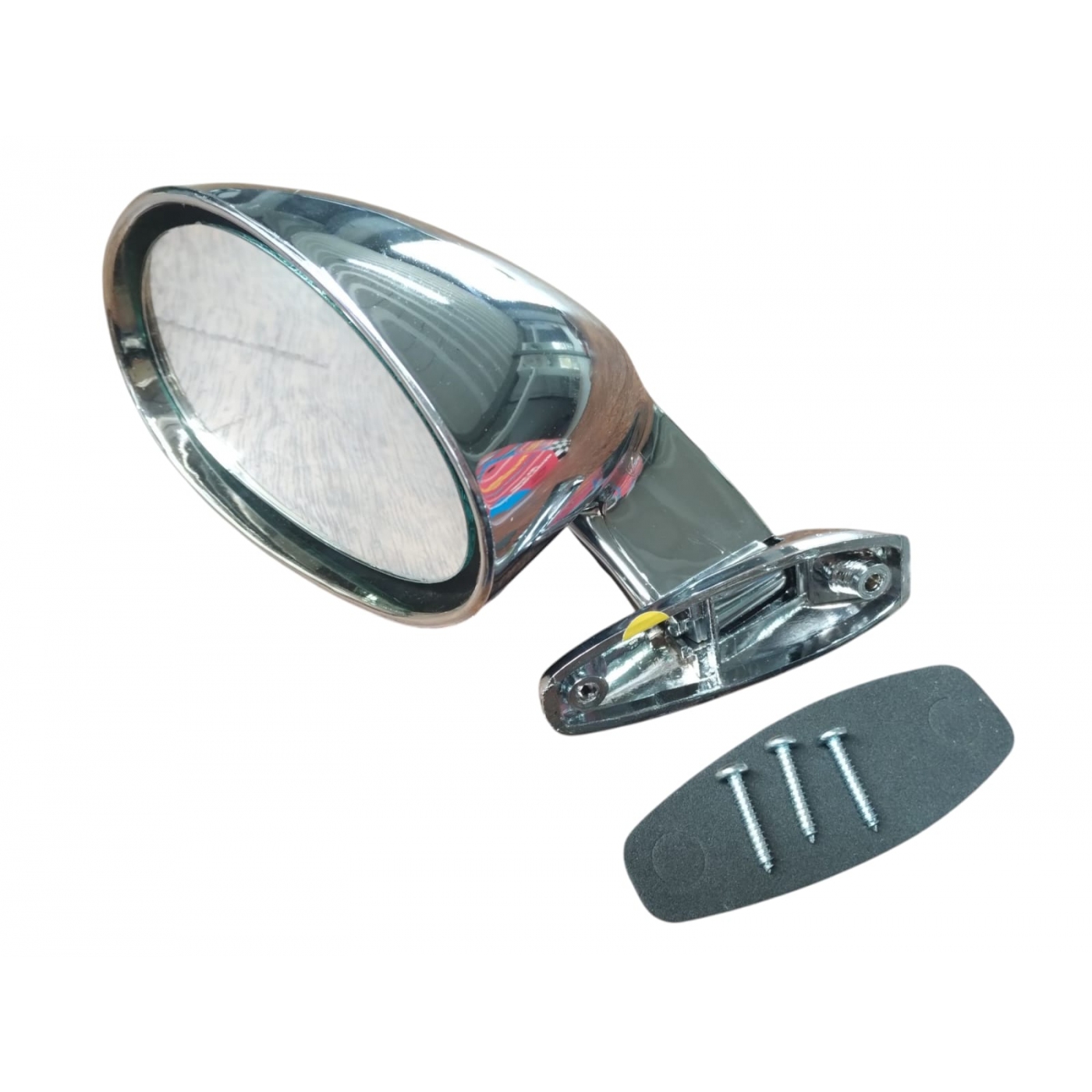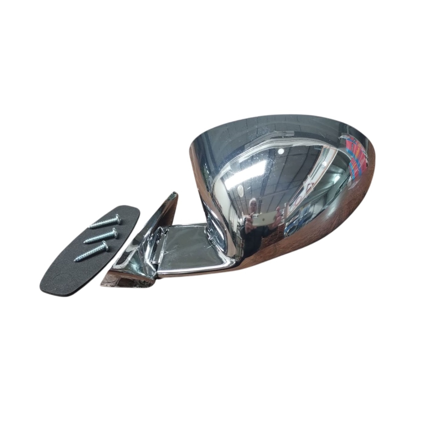 Retrovisor modelo F1 lado esquerdo cromado. Fixado com dois parafusos.