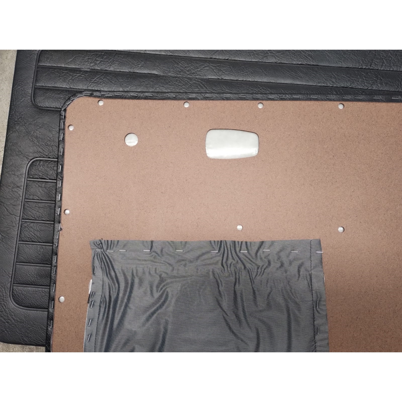 Par de forros de porta dianteiros do Fusca 78 a 96 na cor preta. Eles vem no padrão do Fusca mais antigo e com a bolsa lateral esquerda, porém para uso do gatilho de abertura da porta. Os forros laterais traseiros não fazem parte deste kit.