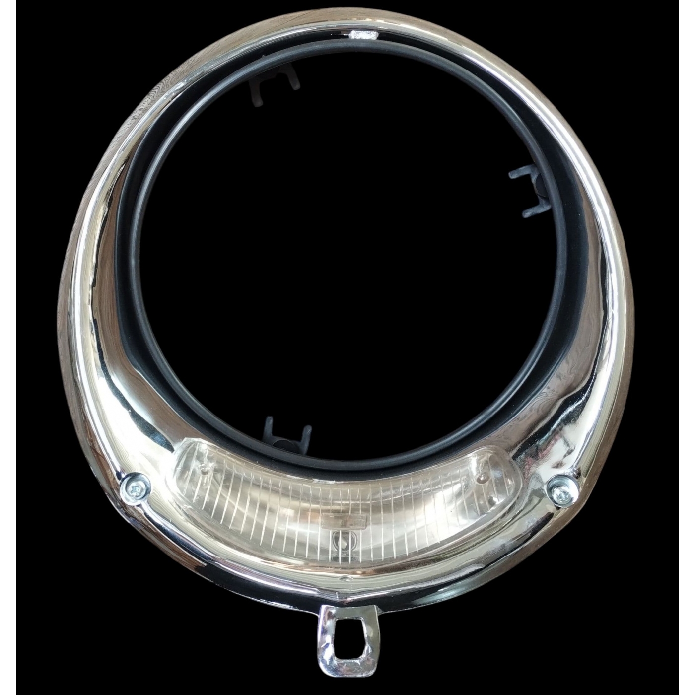 Aro do farol Fusca modelo Tremendão em plástico cromado. O aro Tremendão pode ser usado nos mesmos anos do farol olho de boi (59 a 72). O valor anunciado se refere a cada unidade.