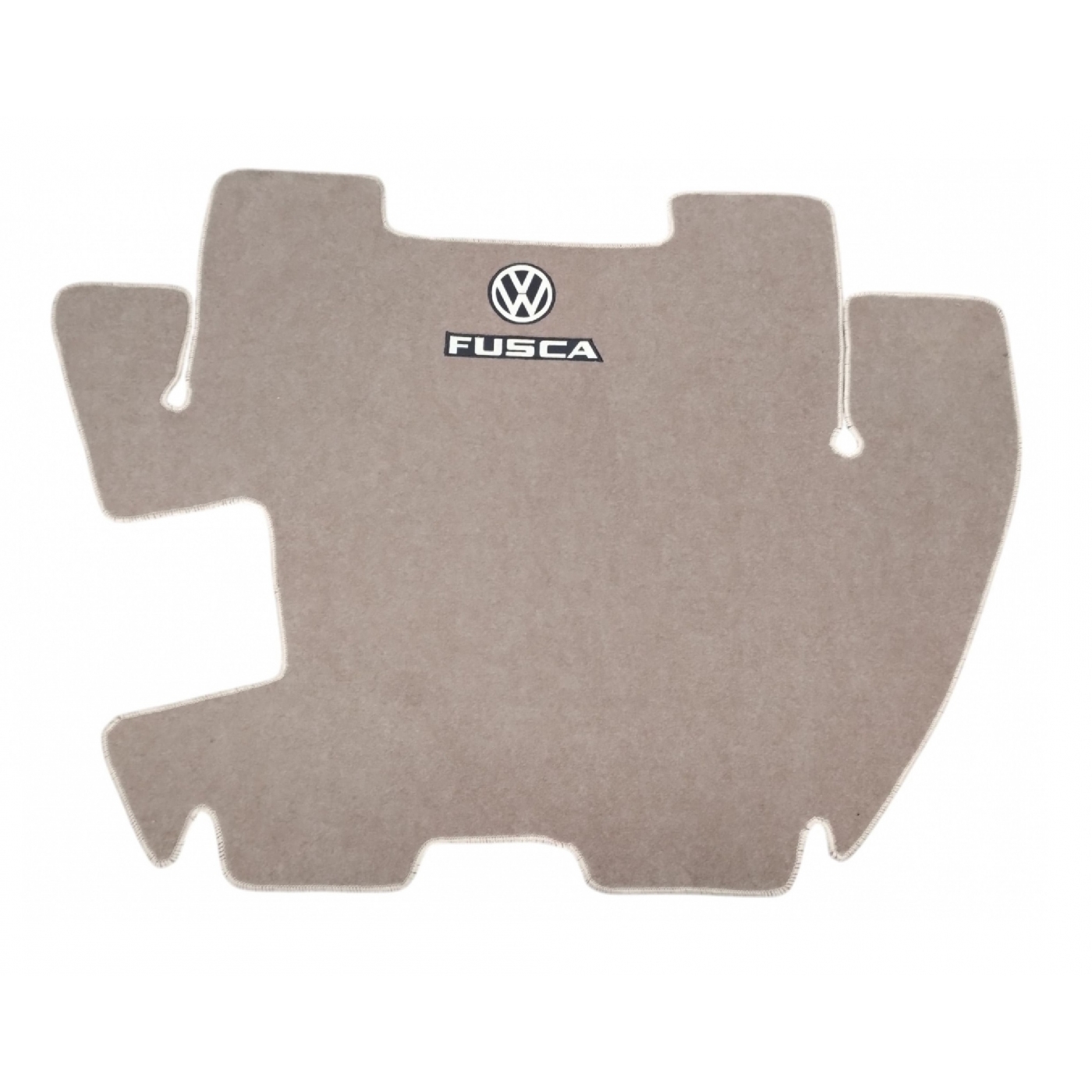Tapete em carpete do porta malas na cor bege para Fusca Itamar. Com o coletor de àgua no capô e com abastecimento externo. Logo Fusca bordado.