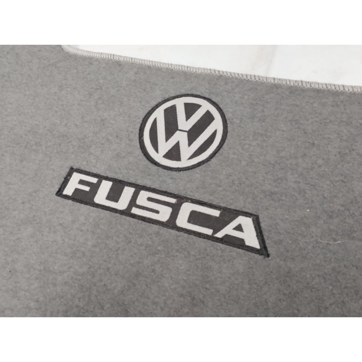 Tapete em carpete do porta malas na cor cinza para Fusca Itamar. Com o coletor de àgua no capô e com abastecimento externo. Logo Fusca bordado.