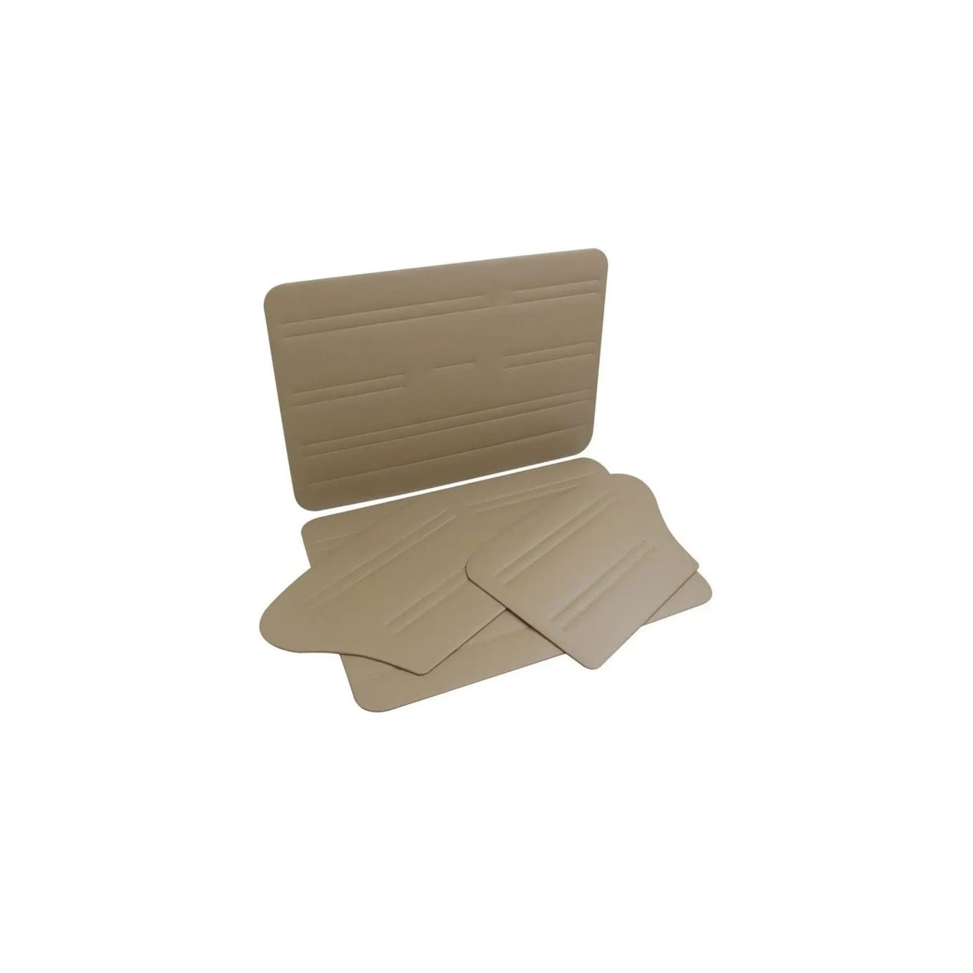 Conjunto de forrações de porta e laterais traseiras na cor bege para Fuscas a partir do ano 78, com costura eletrônica dando um ótimo acabamento. Jogo com 4 peças.
