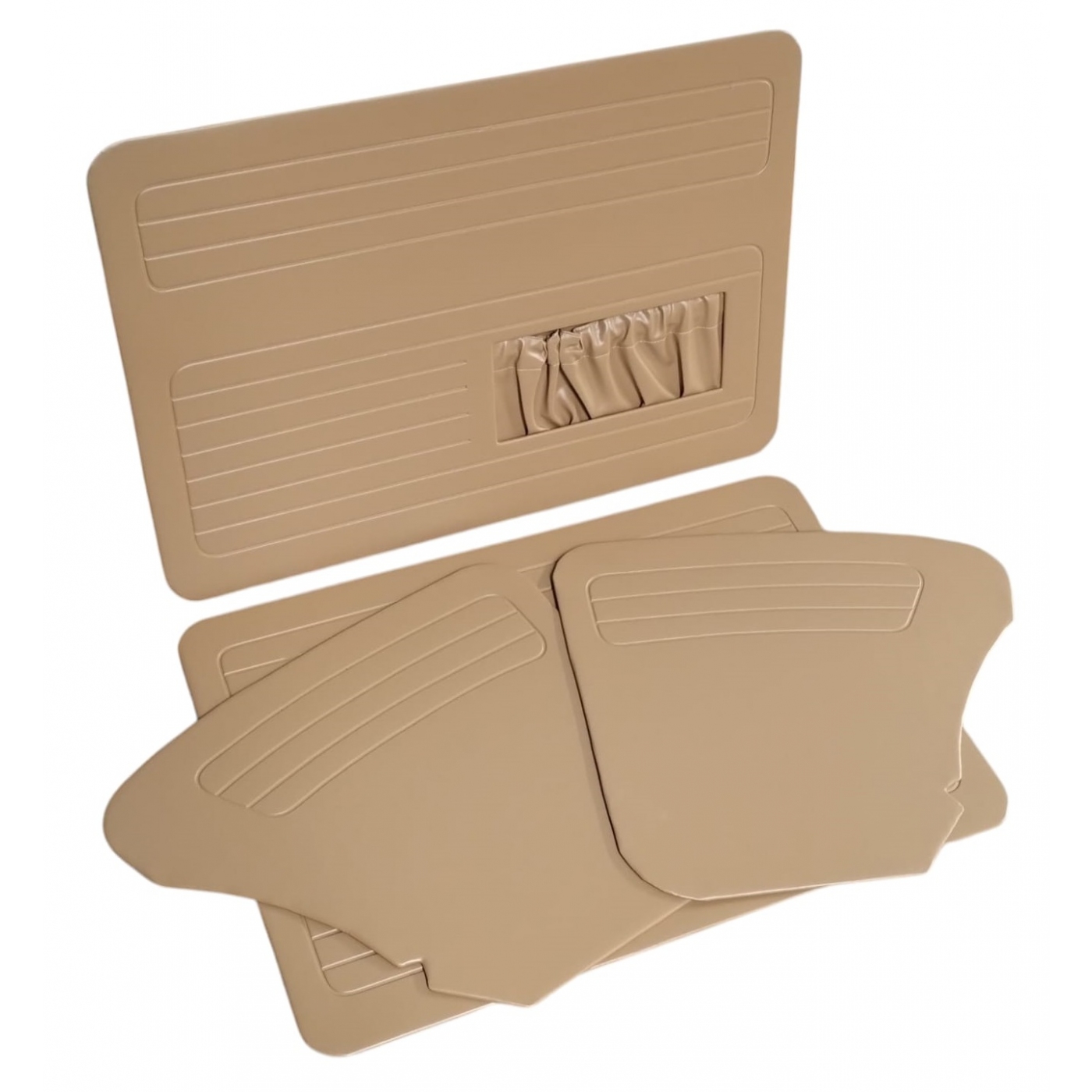Conjunto de forração caramelo com bolsa para fuscas até ano 77, com costura eletrônica dando um ótimo acabamento.