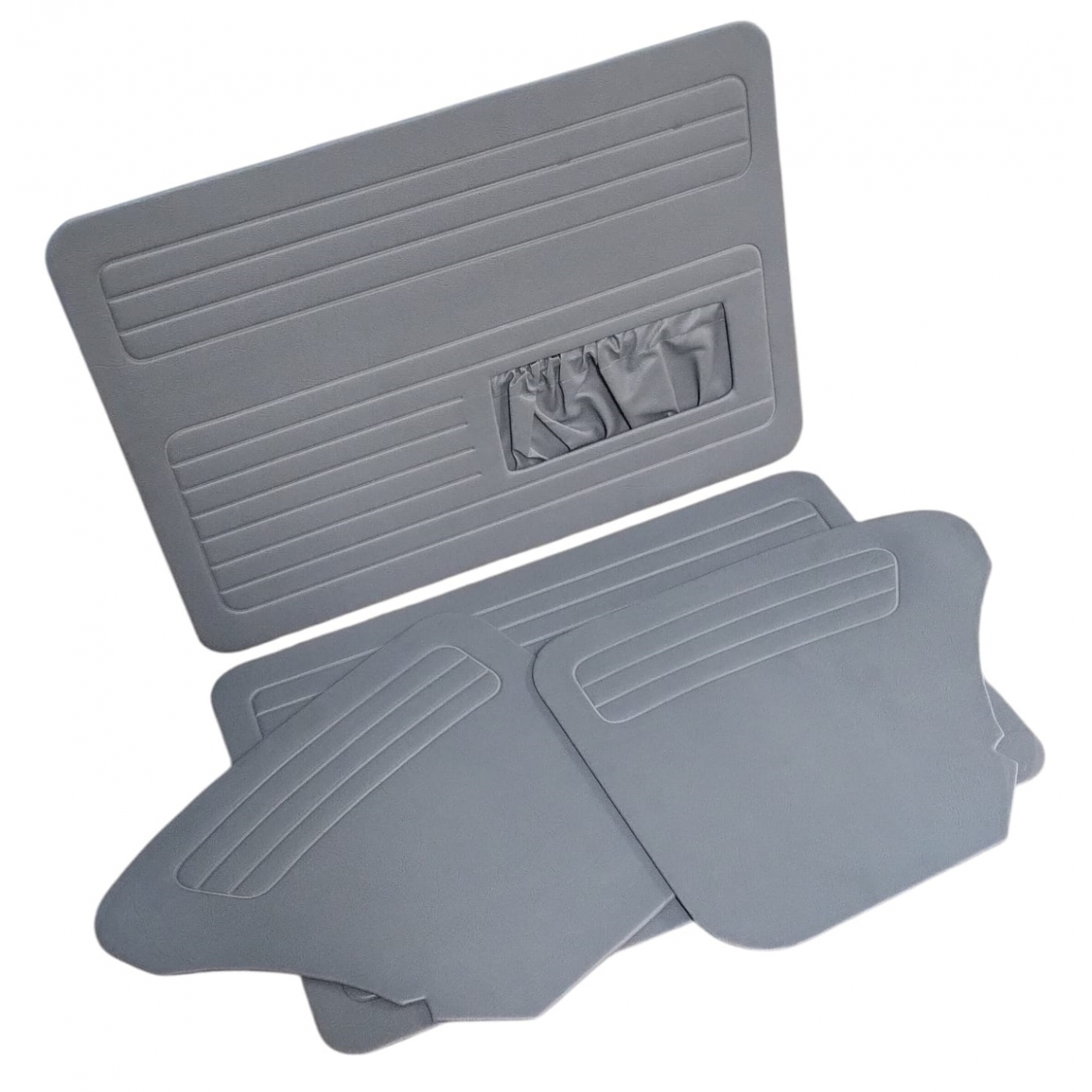 Conjunto de forração cinza com bolsa para fuscas até ano 77, com costura eletrônica dando um ótimo acabamento.