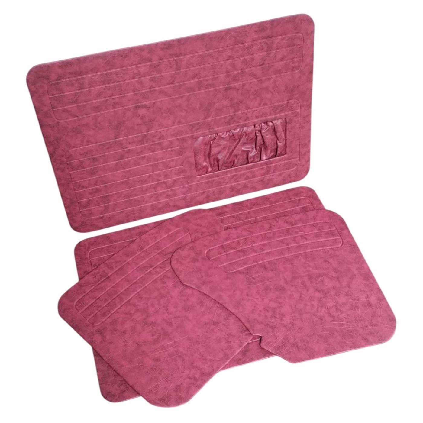 Conjunto de forração vermelho com bolsa para fuscas até ano 77, com costura eletrônica dando um ótimo acabamento.