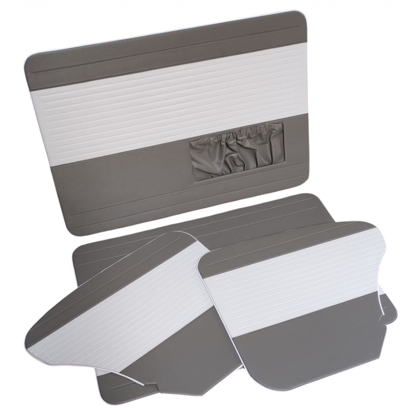 Jogo de forraçãoes de porta Fusca até 76 (4 peças) em duas cores (cinza e branco). Padrão muito próximo as forrações originais do Fusca 1200 até 1966. Ótima qualidade.