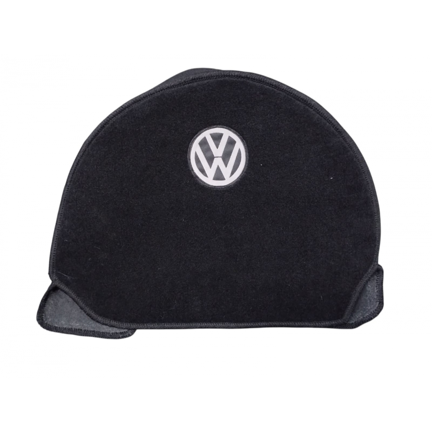 Capa do estepe do Fusca em carpete na cor preta, com o simbolo VW bordado. Ótimo acabamento.