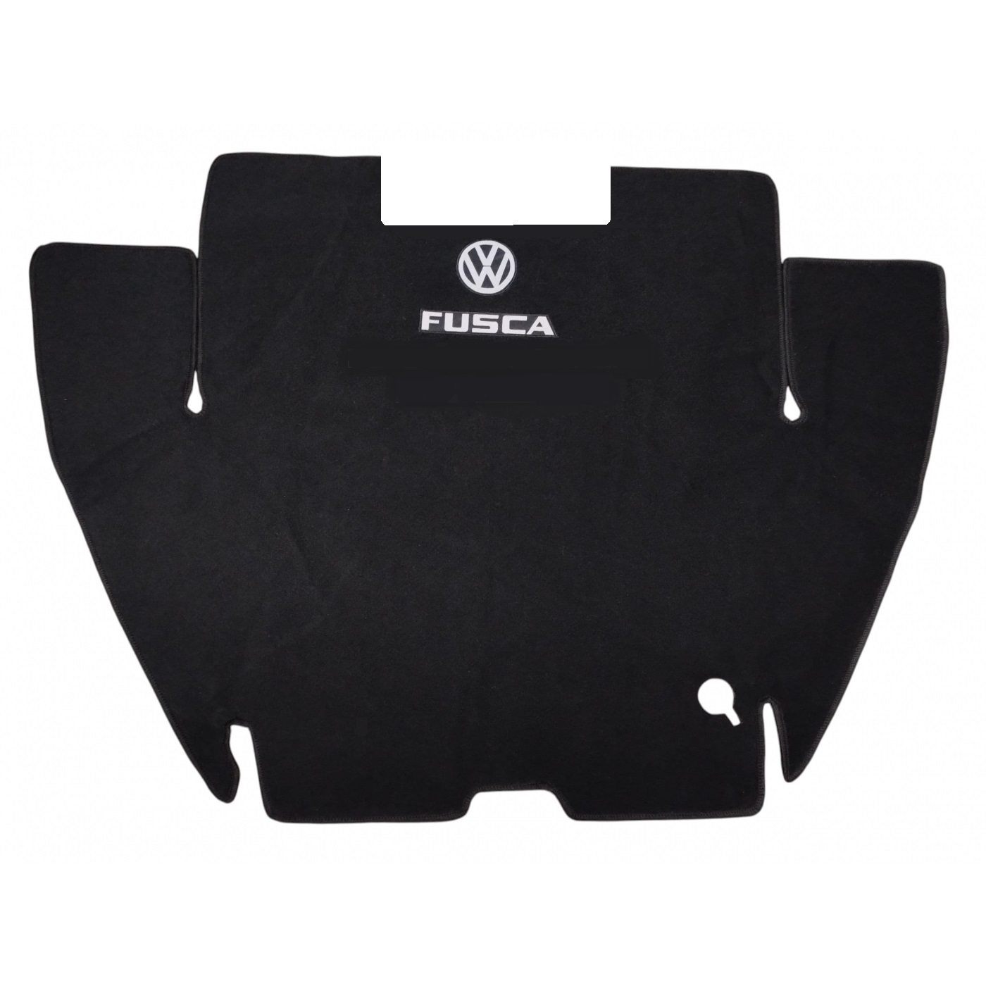 Tapete em carpete do porta malas na cor preta para Fusca. Com o coletor de àgua no capô e com abastecimento interno. Logo Fusca bordado.