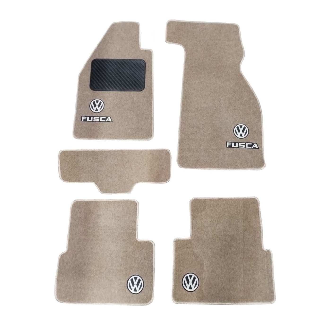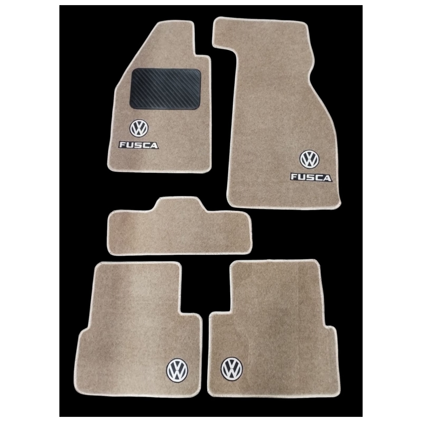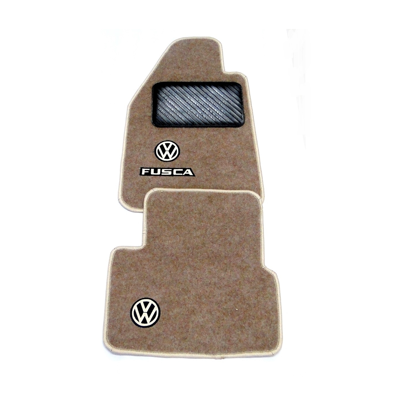 Jogo de tapetes personalizados para Fuscas ( todos os anos ) em carpete bege com logo Fusca bordado. Jogo com 4 peças.